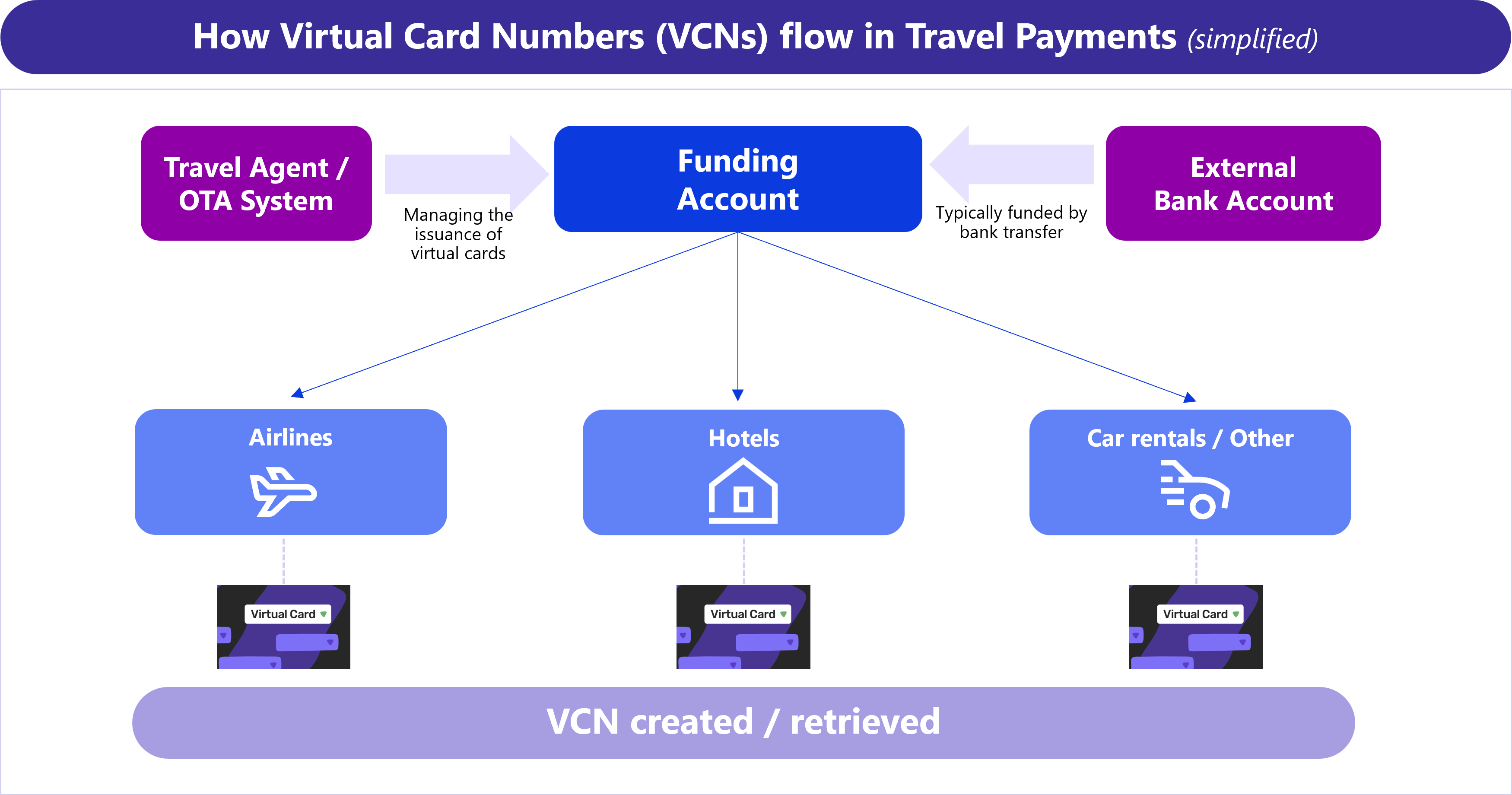 The travel payment ecosystem is unusually complex, involving multiple intermediaries, settlement layers, and legacy processes. Virtual cards simplify and “rewire” this chain by creating a smoother link between four key actors: